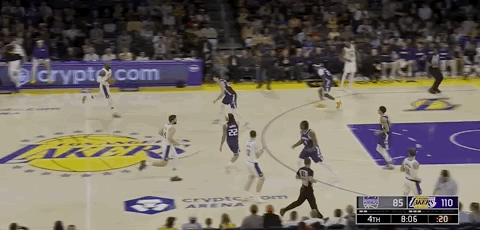 东契奇和肯纳德在本节后段连续外线开火帮助湖人大比分领先结束首节,首节结束,湖人36-18国王。